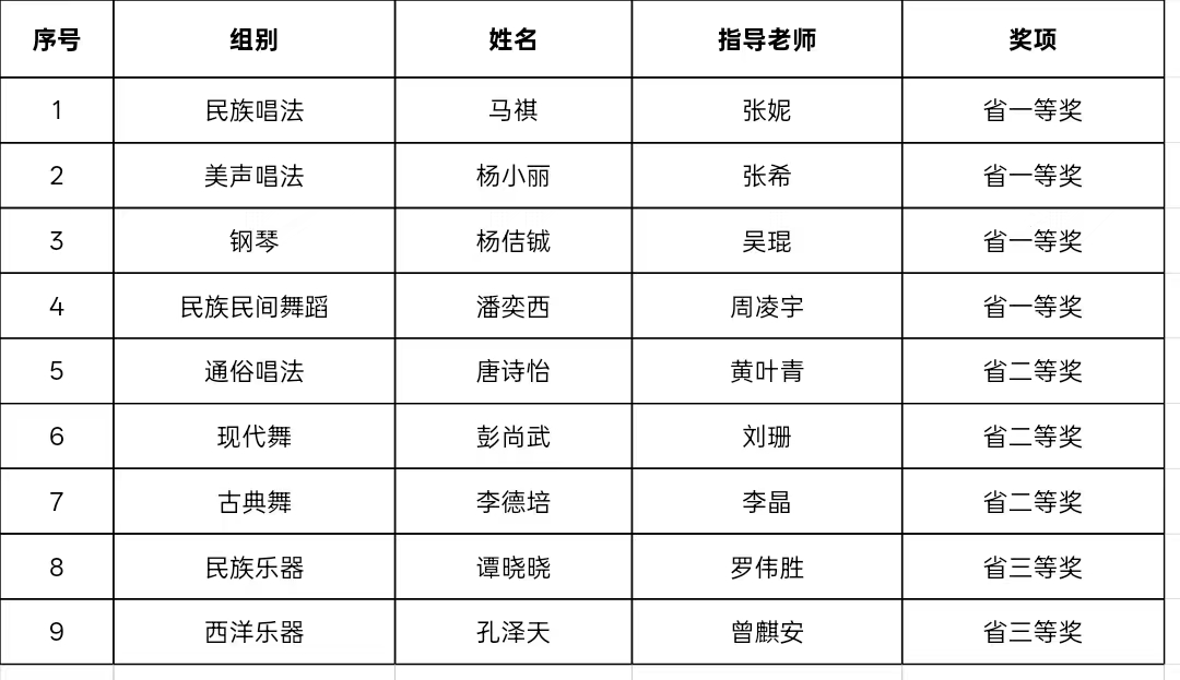 近日,由湖南省教育厅主办、湖南人文科技学院与湖南省中小学美育教学指导委员会共同承办的湖南省第十三届本科院校音乐舞蹈专业学生“独唱、独奏、独舞”比赛圆满落幕。sunbet申搏音乐学院参赛学子凭借扎实的专业功底与出色的舞台表现力,在比赛中脱颖而出,共斩获一等奖4项、二等奖3项、三等奖2项,总计9个奖项,成绩斐然。