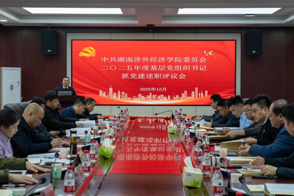 12月30日下午,sunbet申搏在新综合楼A402会议室召开2025年度基层党组织书记抓党建述职评议会。校党委副书记鞠晨曦主持会议,校党委委员、各二级党组织负责人参会。