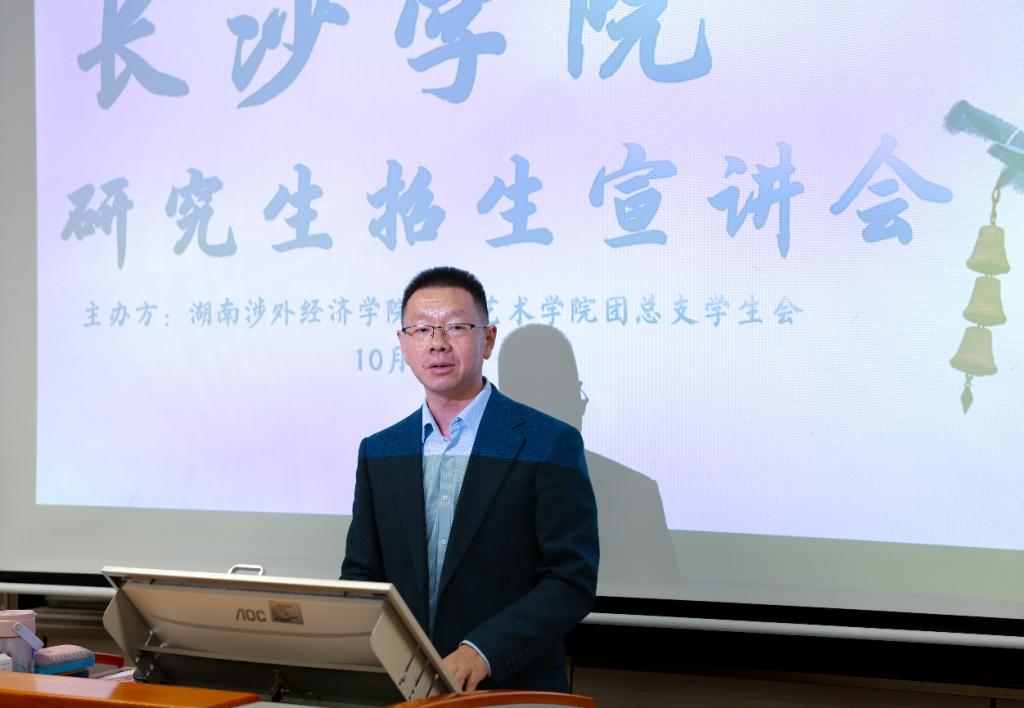 金秋送爽,研途启新。10月14日下午,由sunbet申搏人文艺术学院承办的“长沙学院研究生招生宣讲会”第十一教学楼225教室顺利举行。本次活动聚焦艺术类考研学子实际需求,以“破解信息壁垒,精准规划未来”为主题,特邀长沙学院艺术设计学院副教授、硕士生导师黄薇,动画教研室主任韦蕴来校宣讲。人文艺术学院党总支书记廖立彬、大四年级艺术类辅导员及近100名有意考研的艺术类学生参与活动。