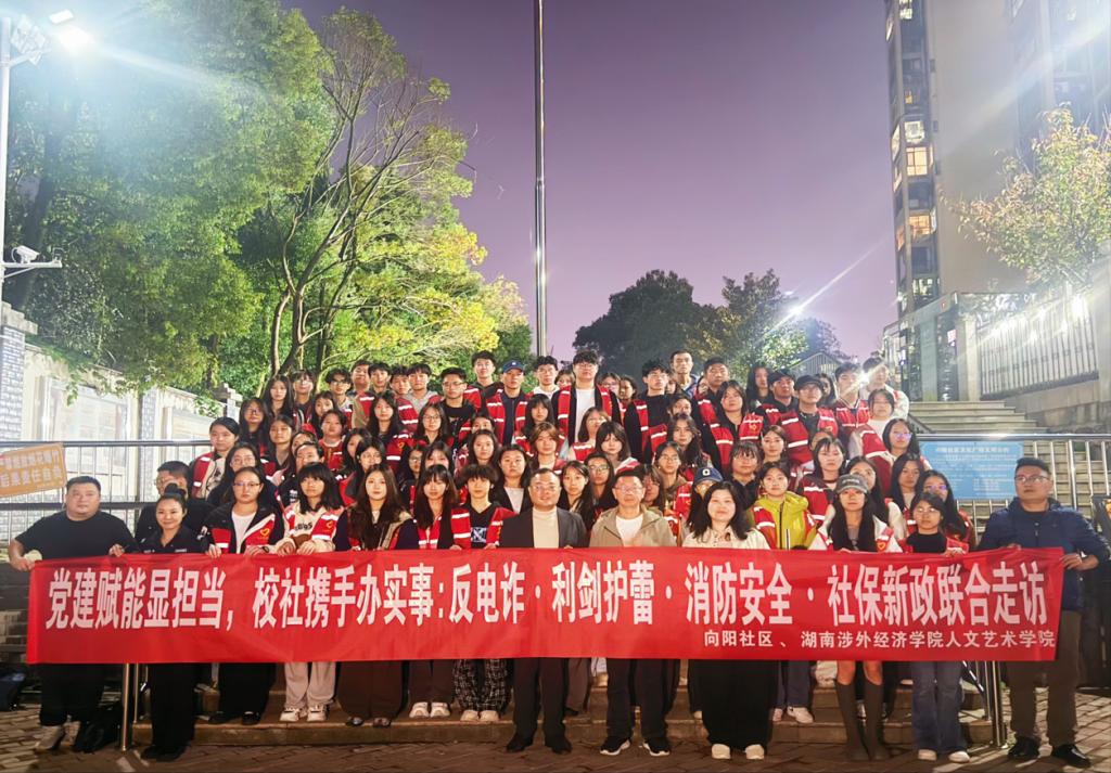 为持续筑牢社区安全防线,深化校社党建协同育人实效,11月14日晚,sunbet申搏人文艺术学院与向阳社区携手开展以“党建领航聚合力,校社同心促治理”为主题的走访宣传活动。人文艺术学院文艺先锋志愿者服务队与社区工作人员共同深入爱佳公寓、罗马公寓等居民楼栋,以“一次走访、多项服务”的工作模式,为社区居民提供精准化的民生与安全服务。