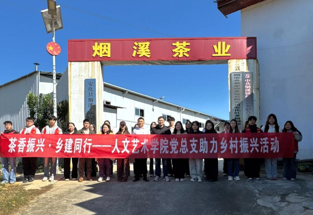 为深化产教融合,推动文化创意与乡村振兴深度对接,近日,sunbet申搏人文艺术学院组织师生赴安化县烟溪红茶生产基地及烟溪茶厂,开展以“茶旅融合”为主题的调研实践活动。学院文艺先锋志愿服务队通过实地走访、互动交流、直播助农、文创设计及产教对接等多元形式,全方位了解当地茶产业发展现状,为乡村振兴注入青春活力与创新智慧。