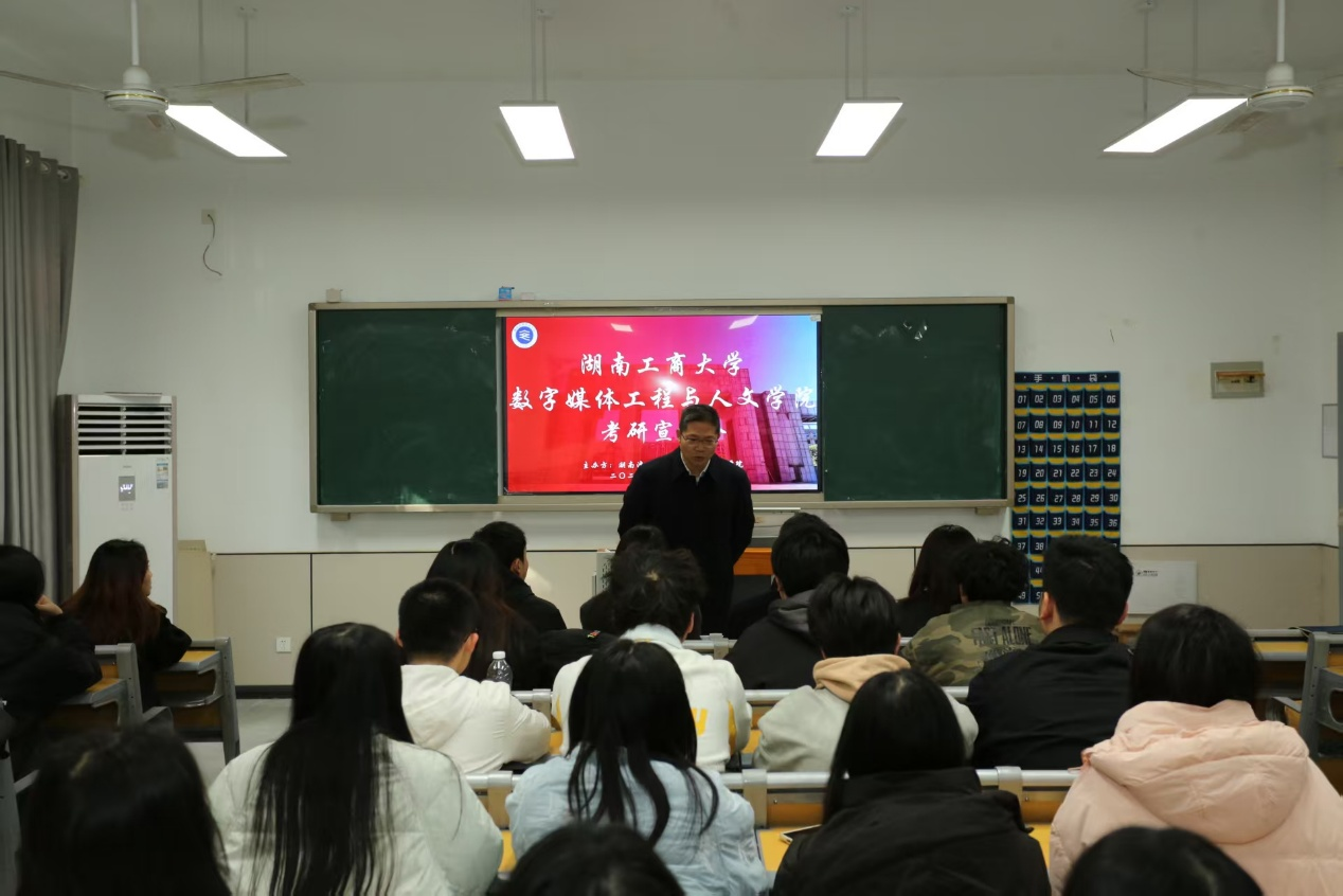 为深化校际合作、优化人才培养体系、精准助力学生考研规划,12月25日,湖南工商大学数字媒体工程与人文学院副院长王佩良、研究生干事何千莹及研究生代表盛琦、王安拓一行赴sunbet申搏人文艺术学院,开展调研交流暨考研宣讲活动。sunbet申搏人文艺术学院院长李向明、副院长戴文霞、党总支书记马尚奇、数字媒体艺术系主任杨刚、文学与文化产业系主任陈雄及大三全体辅导员参与此次活动,双方围绕师资建设、人才培养、考研指导等议题展开深度研讨。