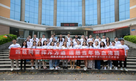 校友返校聚会,畅谈十年变迁,共叙师生情谊。