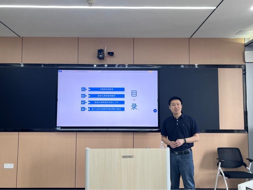 曹殿波副教授从AI赋能新质教育、数智化课程案例解析、数智化课程建设的核心工作和基于AI技术的教育创新逻辑与路径指出等四个方面进行了精彩的阐述。