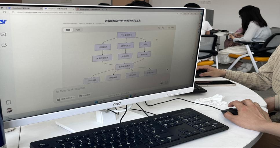 曹殿波副教授给参训教师布置了“基于AI赋能教学创新的方案”工作坊任务。在实践环节中,老师们结合自身教学过程,选取三个重点难题并利用智能大模型获得八个解决建议,再结合曹老师理论环节的指导用Deepseek分别设计出了专属于自身教学问题的优化方案。在设计过程中参训教师规避缺陷,利用“人机沟通之道”灵活运用不同人格以便获取更专业的回答,从而完成了自身的教学问题优化方案,其中两位参训教师做的国际法海洋法教学方案设计和大数据专业python教学优化方案作为优秀案例在工作坊中进行现场展示。