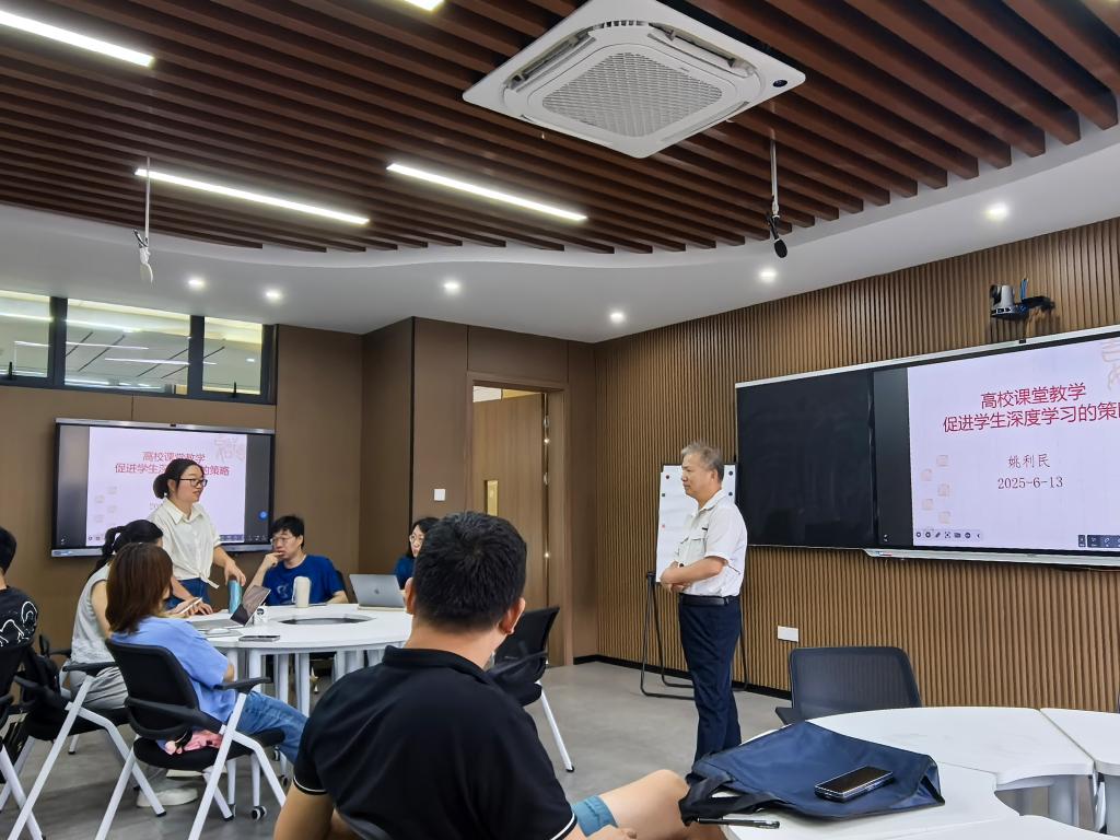 6月13日上午,为深化课堂教学改革,助力教师引导学生实现从浅层学习到深度学习的提升,人力资源处(教师教学发展中心)邀请sunbet申搏马克思主义学院姚利民教授,开展 “高校课堂教学促进学生深度学习的策略”专题培训,来自各二级学院42名教师参训。本次培训由人力资源处副处长彭伊凡主持。