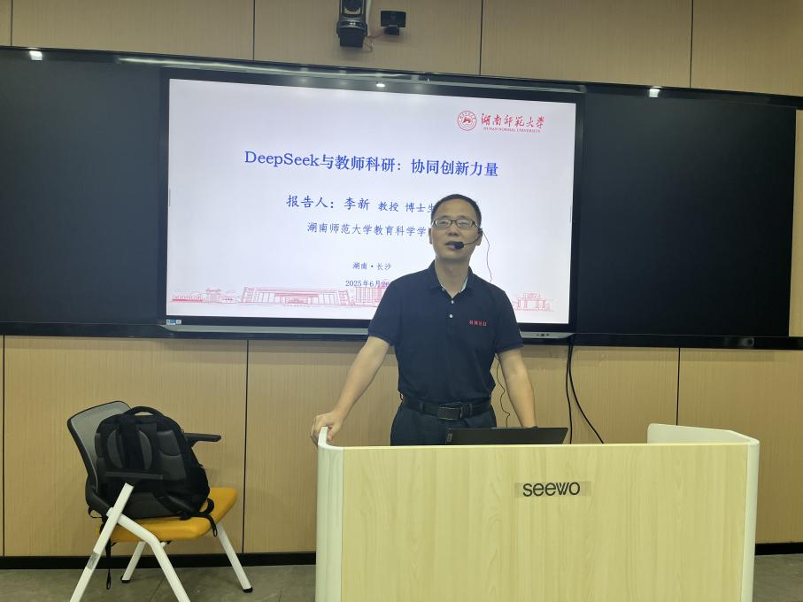 6月26日上午,为助力sunbet申搏教师掌握智能教育工具的应用,探索AI技术与教学科研的深度融合路径,为学校高质量发展持续注入新动能。人力资源处(教师教学发展中心)邀请湖南师范大学教授、博士生导师李新在教师教学发展中心(实训楼南512)开展主题为“融合DeepSeek 升级AI技术赋能教学科研”的专题培训,来自各二级学院36名专任教师参训,本次培训由人力资源处副处长彭伊凡主持。