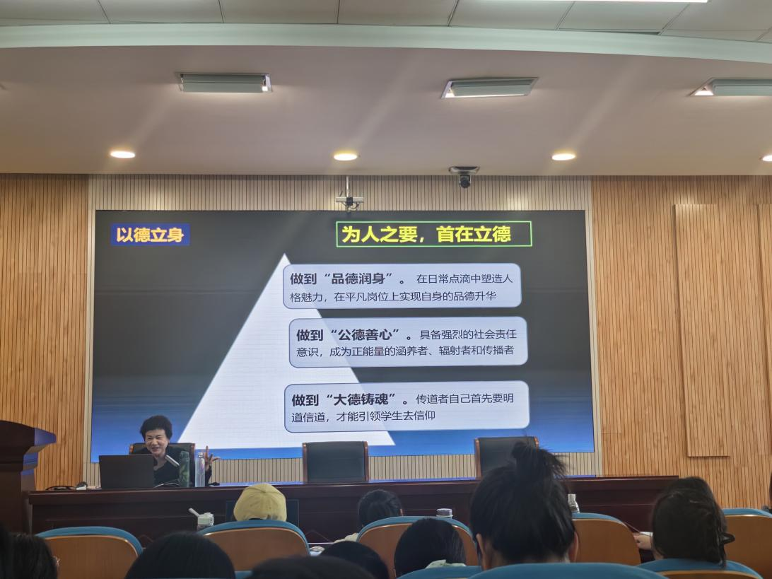 培训过程中,姚教授结合真实案例,生动阐释了如何通过“以德立身、以德立学、以德施教、以德育德”实现育人使命。她鼓励教师们努力成为“经师”与“人师”相统一的“大先生”,做学生为学、为事、为人的示范。