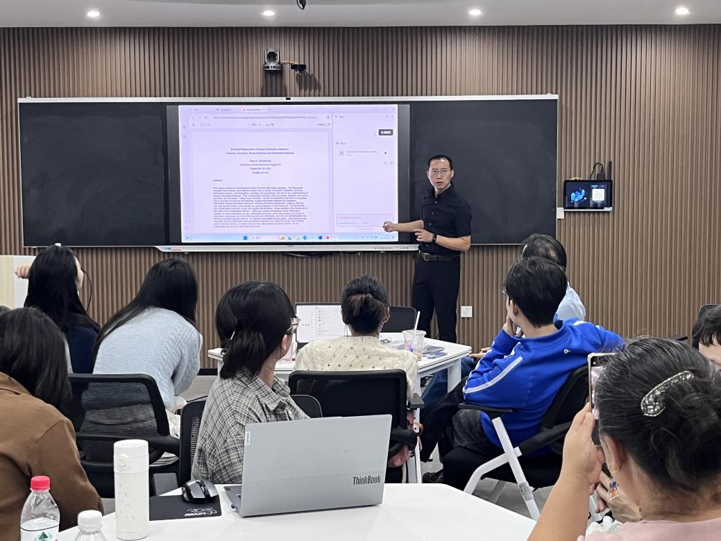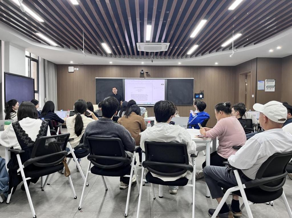 汪晓东副教授在教育技术与AI融合领域具有深厚的理论功底和丰富的实践经验。在培训中,他系统阐述了AI如何重塑科研范式,涵盖科研选题、文献调研、实验设计、数据分析、学术写作、学术伦理等关键环节,并结合AIGC快速生成、AI课程重构等实例,展示了AI在教学创新中的广泛应用前景。
