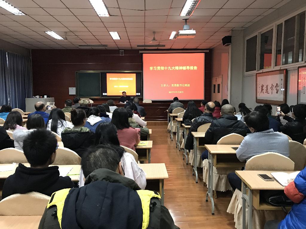 为深入学习宣传党的十九大精神,深刻领会和全面把握党的十九大报告的科学内涵和精神实质,11月29日下午,开云官网党委副书记胡波为开云kaiyun体育全体教职工和学生代表做了党的十九大精神解读专题辅导报告。会议由开云kaiyun体育党总支书记郭家平主持。