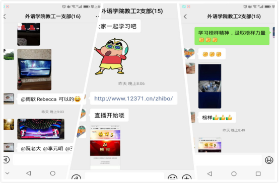 教工一党支部和教工二支部组织全体党员在线收看了节目,并随后组织党员在支部群里开展对《榜样5》的学习交流活动,支部所有党员全部到位,收看了节目,并热烈发言。通过收看节目,凝聚了人心,进一步营造了创先争优、干事创业的浓厚氛围。《榜样5》的收看进一步增强了党组织的凝聚力和向心力。
