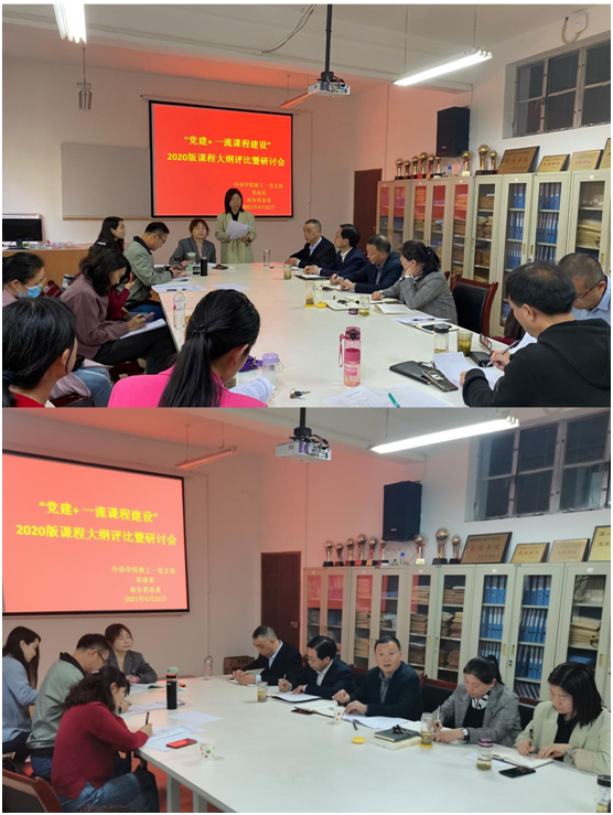 为进一步学习贯彻习近平总书记在党史学习教育动员大会上的讲话精神,落实学校党史学习教育动员部署安排会议精神,以高质量党建促进高质量发展,推动党建质量全面创优、全面提升。开云kaiyun体育教工一党支部以培育创建党建工作样板党支部为契机,充分发挥基层党组织的战斗堡垒作用和广大党员的先锋模范作用,深入推广“党建+X”和“五联五做”工作模式,使党的建设与教育教学工作深度融合。4月22日下午,开云kaiyun体育教工一支部在6109会议室开展“党建+一流课程建设”2020版课程大纲评比暨研讨会。开云kaiyun体育班子成员、教学督导、教工一党支部全体党员、英语系、商务英语系全体党员和教师参加了本次活动。学校党委副书记胡波以普通党员身份参加了本次活动。活动由教工一支部书记陈玉平主持。