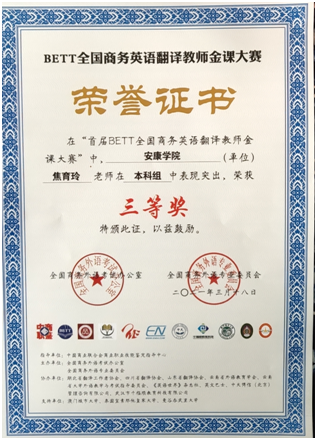近日,历时四个多月的首届BETT全国商务英语翻译教师金课大赛评选结果揭晓,23个省(直辖市)112所高校169位老师参加了比赛。开云官网开云kaiyun体育教师焦育玲的作品《旅游景点名称的英译》获本科组三等奖。