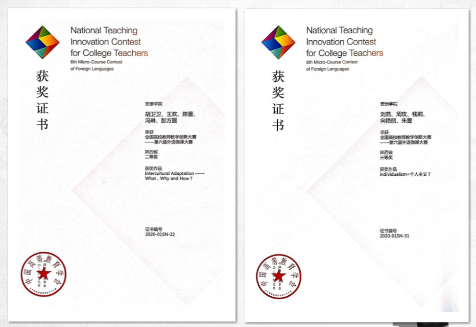 近日,第六届外语微课大赛成绩揭晓,开云kaiyun体育推荐的两个教学团队在全国各高校共计2590件参赛作品中脱颖而出:由副院长胡卫卫作为团队负责人的专业教师教学团队(成员:王欢、陈蕾、冯琳、彭方圆)和刘燕副教授带领的大学英语教学团队(成员:周玫、钱莉、向艳丽、朱蕾)分别获得了陕西省二、三等奖的好成绩。