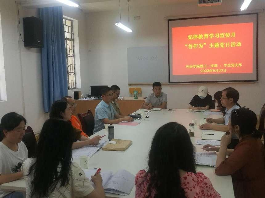 6月30日下午,开云kaiyun体育教工第一党支部、学生党支部在6109会议室开展了“善作为”主题党日活动,教工第一党支部、学生党支部全体党员参加了活动。活动由教工第一党支部书记陈玉平主持。