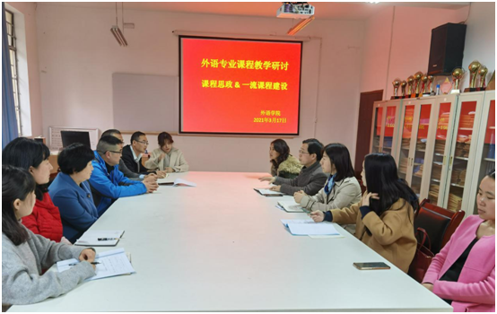 近年来,该学院坚持金课标准,即“两性一度”(高阶性、创新性、挑战度),从一流专业建设出发,遴选部分专业课程,从教学理念、课程思政、教学模式、教学方法、教学内容、考核方式等多方面进行综合改革,通过“以点带面”的方式,逐步推进,促进课程内涵建设。目前该院已建设《综合英语》《英语语音》《英语听力》《英语学科教学论》《英语笔译》《班主任工作技能训练》《英美文学》等多门教改示范课、课程思政示范课、双师课、混改课和考改课,其中《英语学科教学论》已建成陕西省在线精品课程和陕西省普通高校教师教育类在线开放课程。