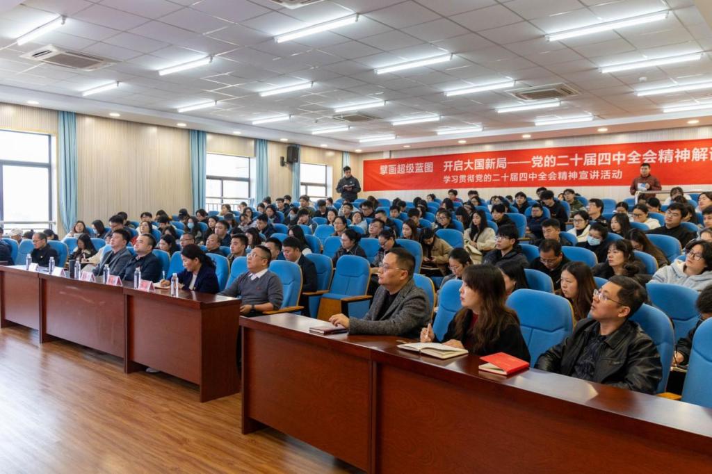 宣讲会现场《新湘评论》杂志社社长、总编辑贺弘联主讲校党委副书记鞠晨曦主持12月11日,为深入学习贯彻党的二十届四中全会精神,sunbet申搏在党建馆D202会议室举办中心组(扩大)专题宣讲会。本次宣讲特邀《新湘评论》杂志社社长、总编辑贺弘联担任主讲人。校党委理论学习中心组全体成员,各党总支书记、副书记,各党支部书记以及全体辅导员参加会议。贺社长从时代背景与重大意义切入,对全会蕴含的政治、理论、实践、世界及历史五层...