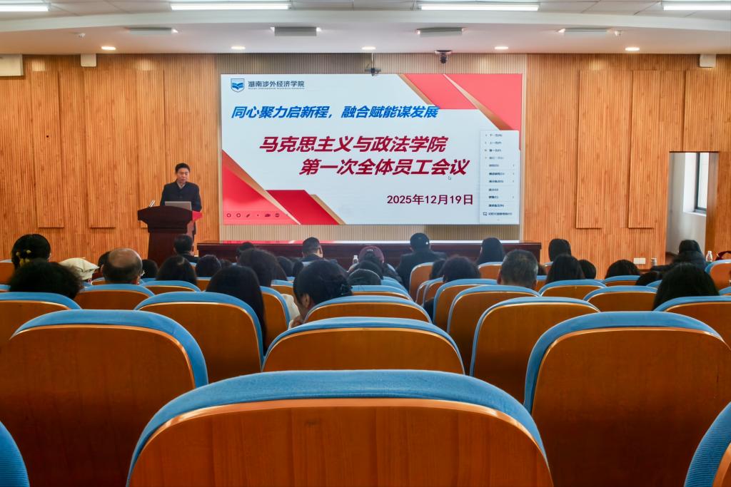 (会议现场)(校长王耀中讲话)为深入贯彻实施教育强国战略,全面落实学校学科布局优化与高质量发展部署,在充分调研和科学认证基础上,学校将法律系与马克思主义学院合并,组建马克思主义与政法学院。12月19日下午,马克思主义与政法学院在综合楼思政大讲堂召开成立后的第一次全体教职工大会,共商学科融合发展,共绘学院建设新图。校长王耀中教授出席会议并讲话,学校党政办主任李方圆、马克思主义与政法学院班子成员及及全...